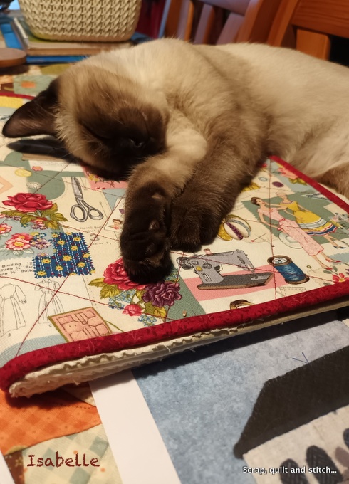 Pour une fois que j'ai un admirateur mâle, je vous le présente : voici Siam qui a trouvé l'endroit idéal pour la sieste, le voilà bien installé sur l'ouvrage d'Isabelle.